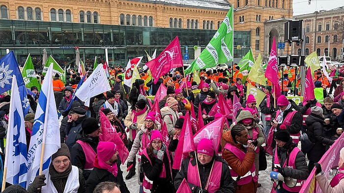 Großdemonstration in Hannover: Rund 1.000 Beschäftigte trotz Eis und Glätte auf der Straße